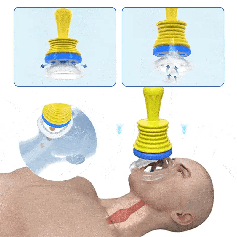 Res-Q funciona creando una fuerza de succión para eliminar la obstrucción de la vía aérea. La presión negativa generada por esta succión es 3 veces mayor que la generada por una compresión abdominal (Maniobra de Heimlich).